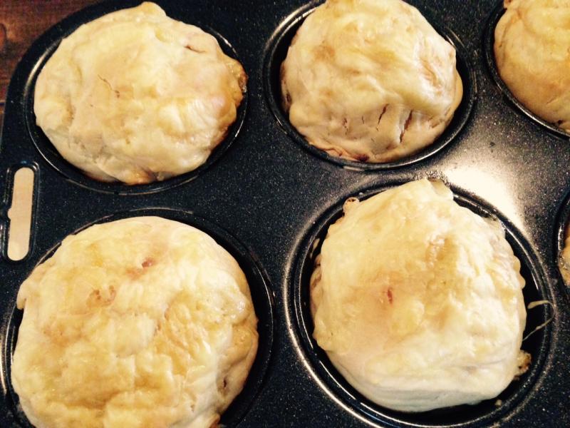 玉葱を飴色になるまで炒めて、チーズを入れてマフィンにしました。
