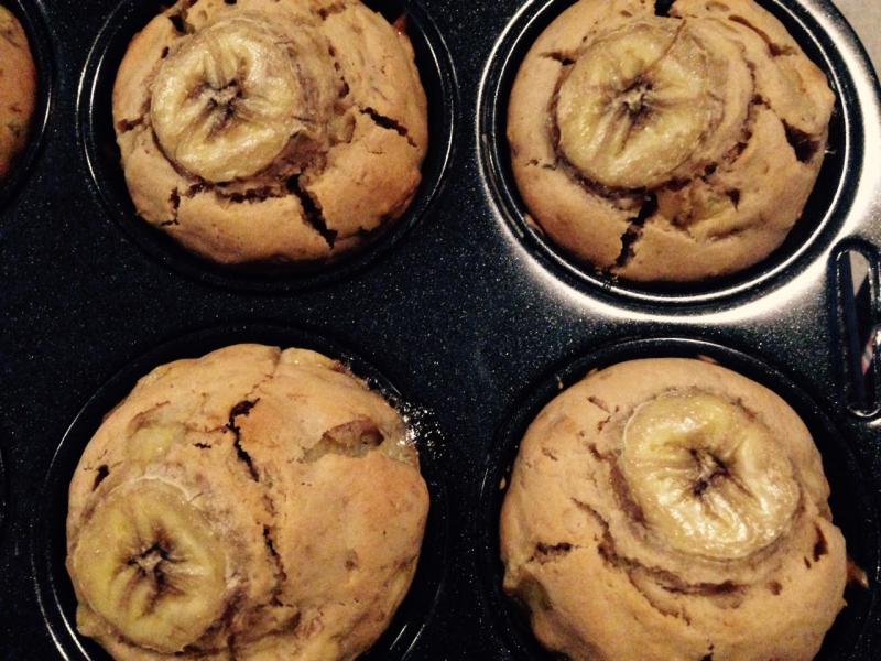 復活第一弾は、バナナとクルミとレーズンのシナモンマフィン。