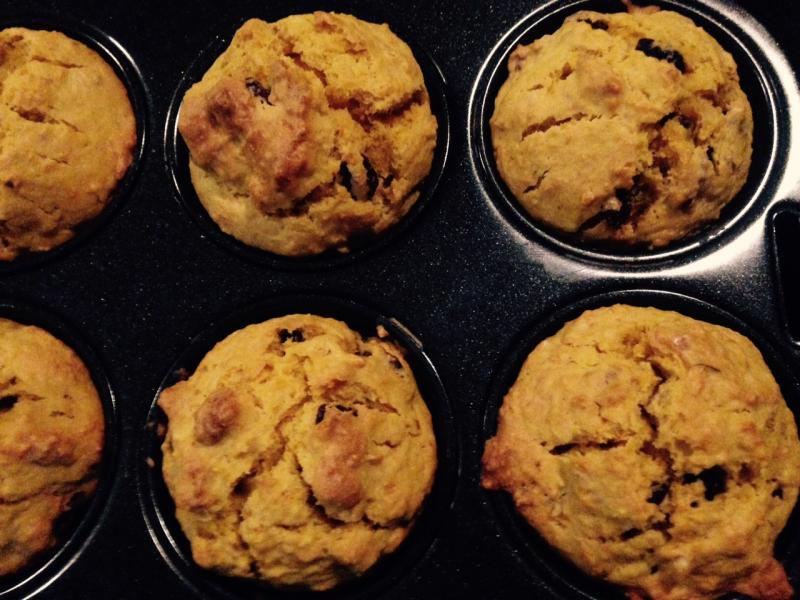 レーズンとくるみの入ったニンジンのマフィンです。