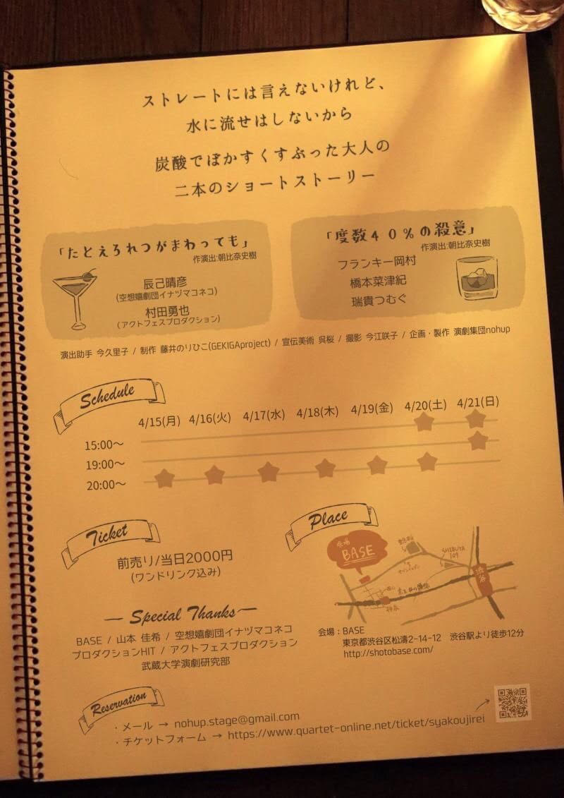 また、この公演期間は、通常営業は21:30からとさせていただきます。