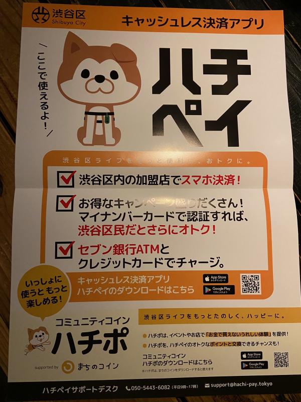 渋谷区のキャッシュレス決済アプリ、ハチペイの加盟店になりました!