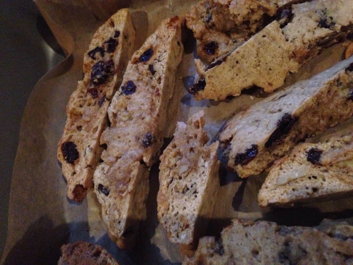 案の定、うちにある材料でできそうなので、クルミとレーズンが入った全粒粉のビスコッティを焼いてみました。