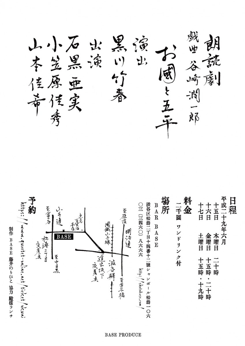 次回BASEプロデュースは谷崎潤一郎が書いた時代劇の戯曲の朗 読です。